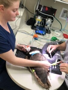 She was intubated and had an IV catheter placed as she was prepared for her surgical procedure. Specialized monitoring equipment is utilized to ensure the safest possible surgery for our patients, as in human surgery.